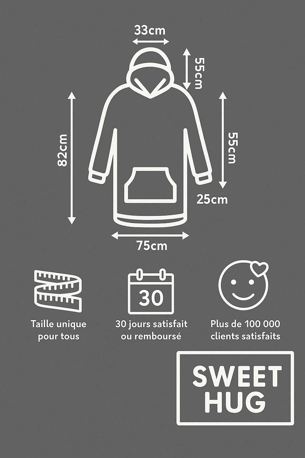 Parfait pour Netflix, thé chaud et chill à la maison ! Le sweet hug est ultra moelleux, léger mais très chaud. Je ne pensais pas qu’il serait aussi confortable. Coup de cœur total